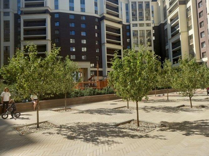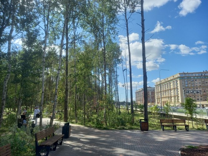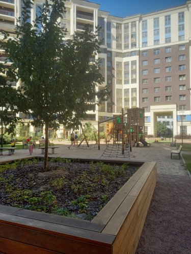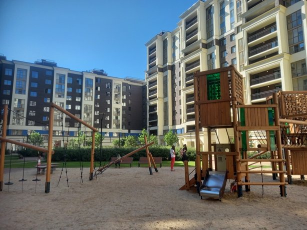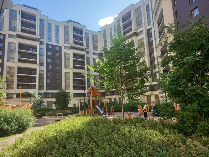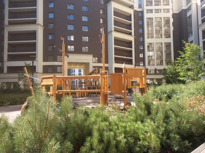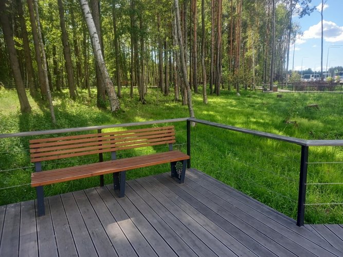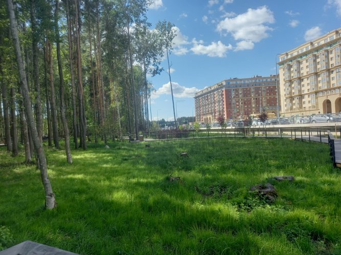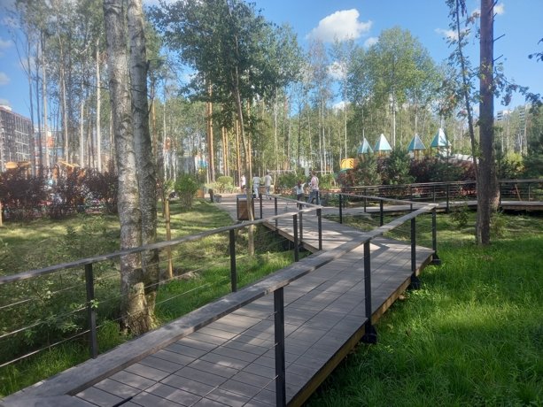 Застройщик в 5 минутах ходьбы от ЖК оставил участок леса, оборудовал его детской площадкой, скамейками и дорожками из деревянных настилов, что обеспечивает спокойную проходимость без каких-либо перепадов высот для абсолютно любой детской коляски - именно поэтому данные дорожки являются любимым местом прогулок родителей с колясками, которые под тенью деревьев на свежем воздухе могут наслаждаться пением птиц.