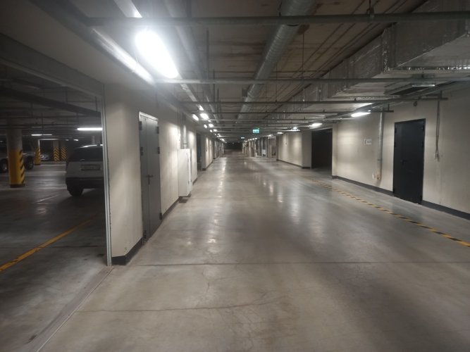 С прямым доступом на лифте. Он масштабен и пролегает под всеми корпусами. Оснащён мощной системой вентиляции.