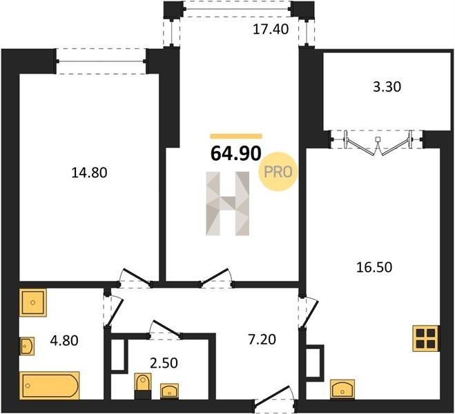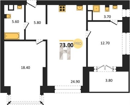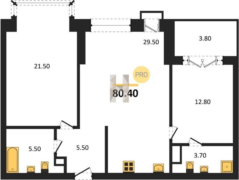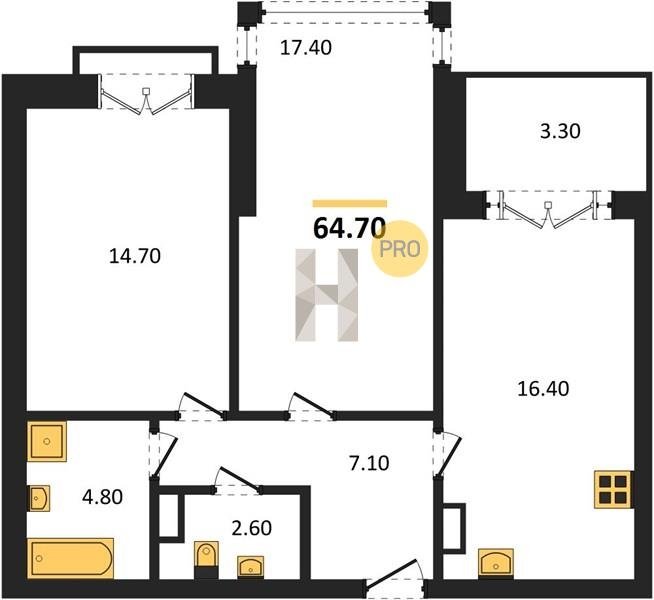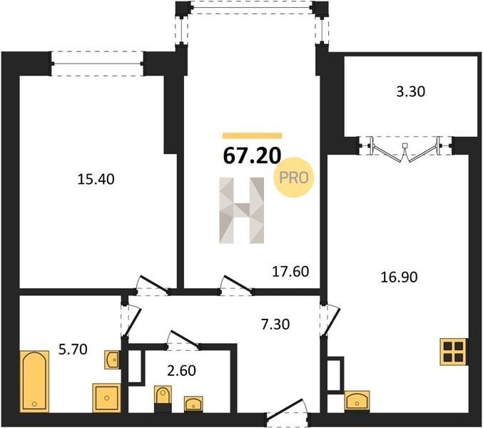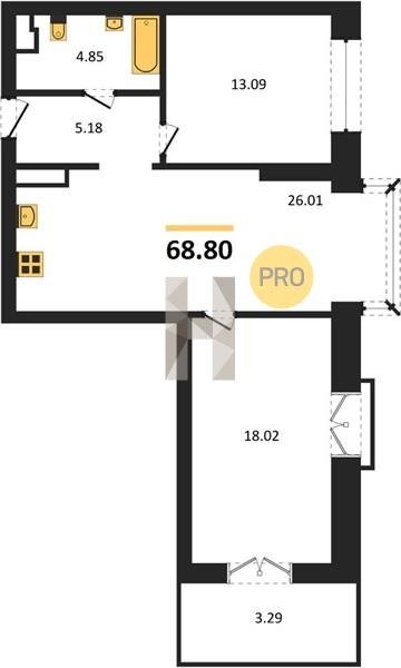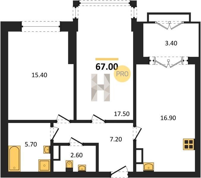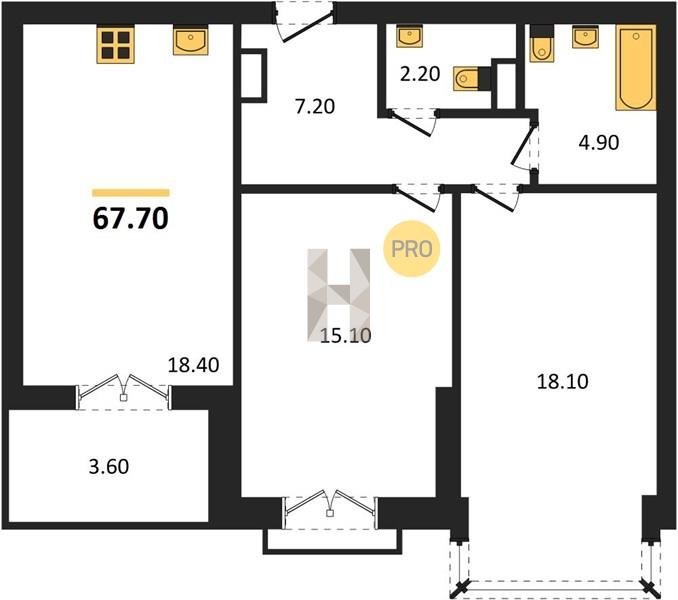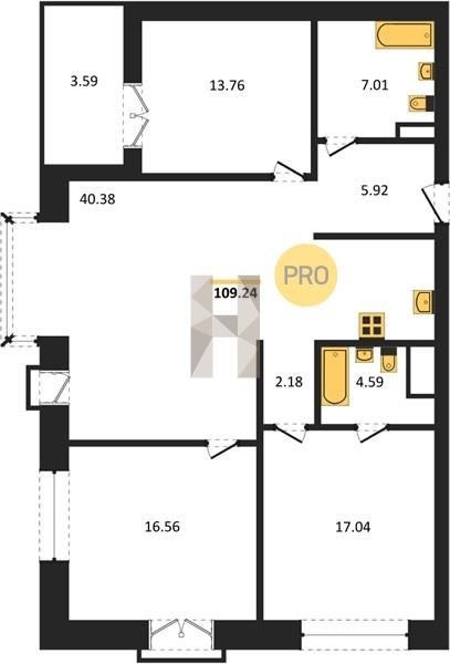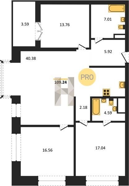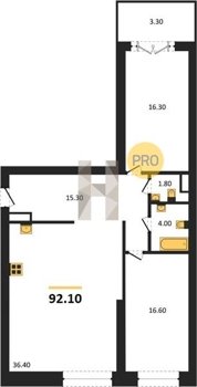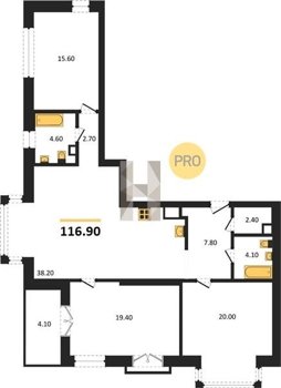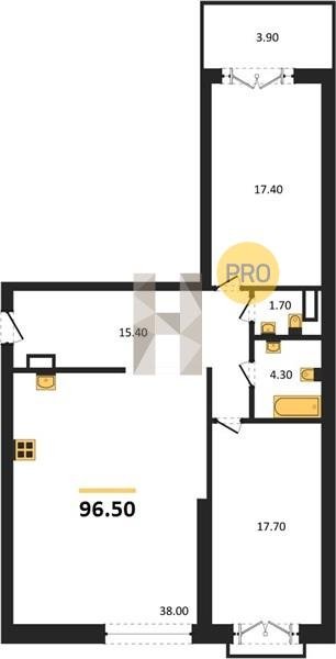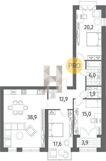 Площадь от 38.6 м2