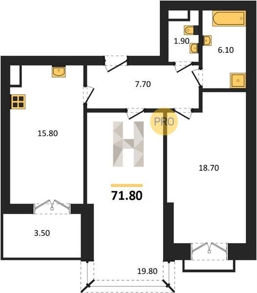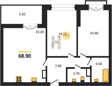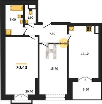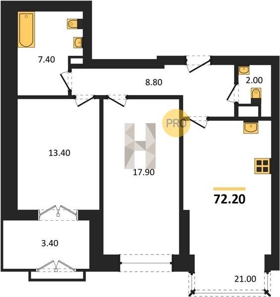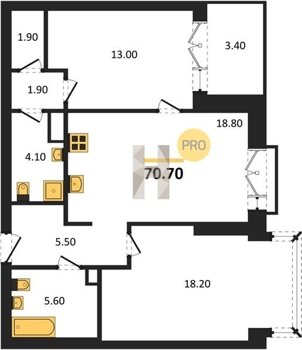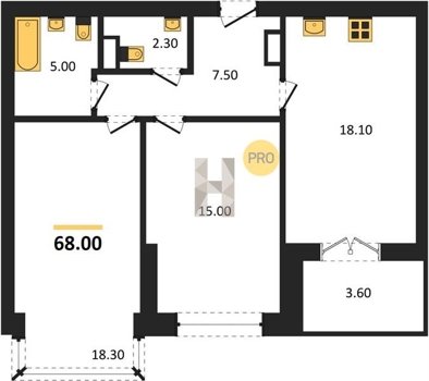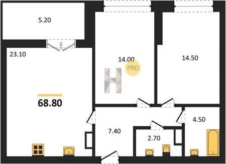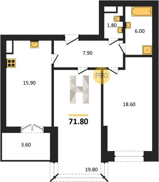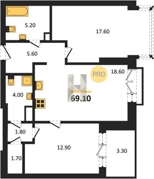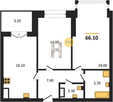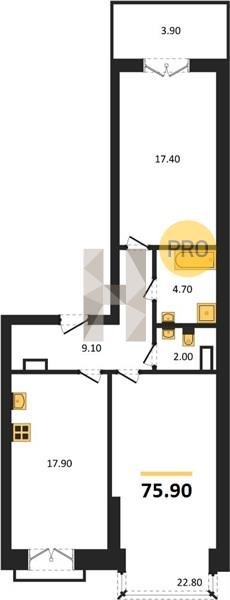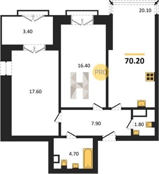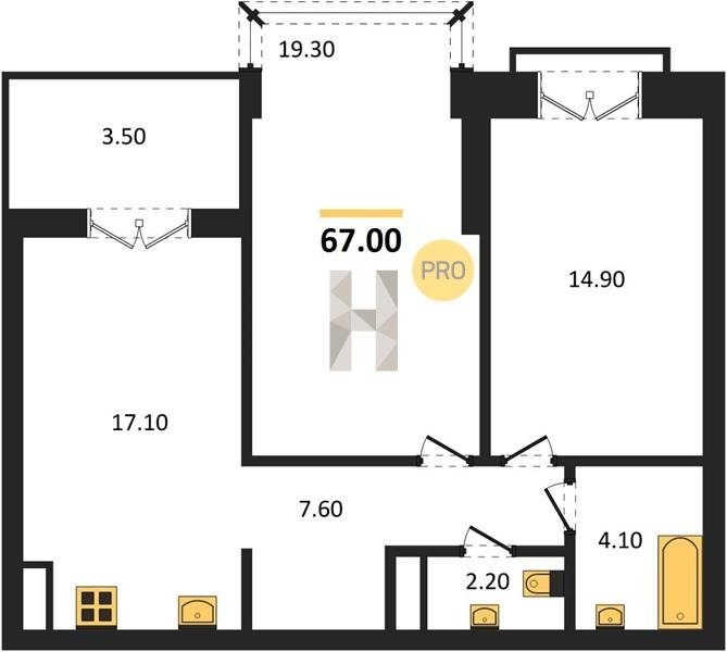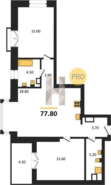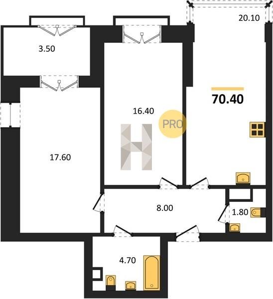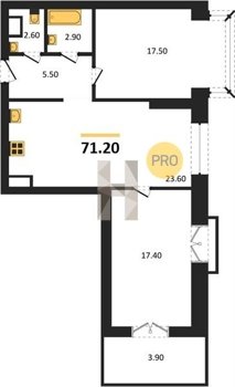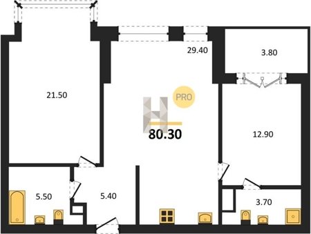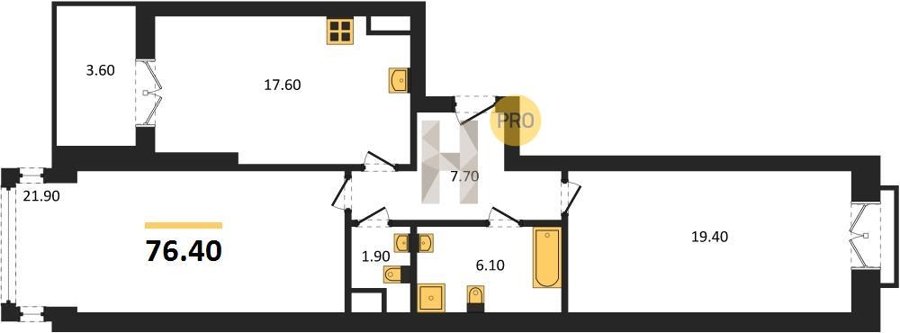 Площадь от 38.6 м2