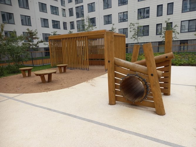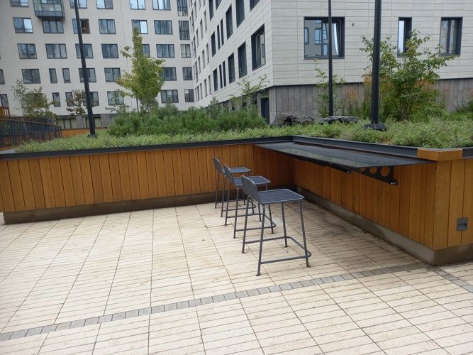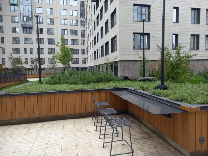 В ЖК “Наука” имеется и детский сад на 280 мест. и школа на 1125 мест. а также паркинг на 1500 мест. Дворы здесь закрыты от посторонних посетителей, озеленены, есть беседки, а для детей - современные детские площадки.