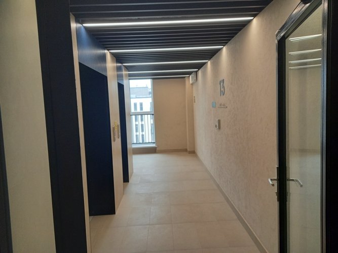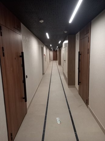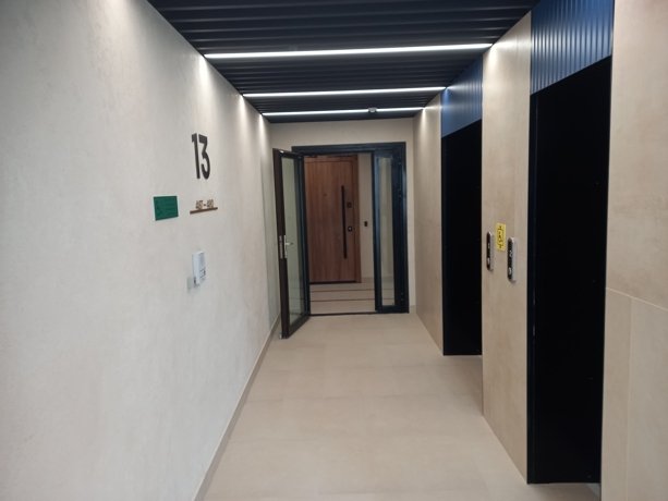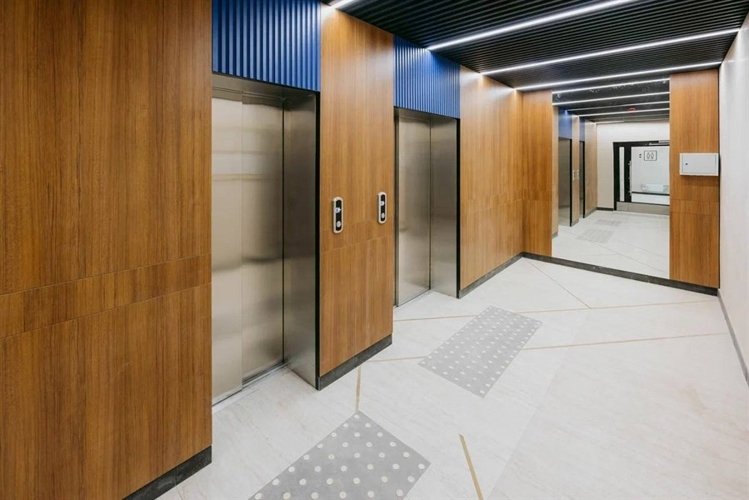 Здесь отсутствуют квартиры-студии, а лестничные площадки оформлены на контрастах черного, светло-серого и коричневого, что создает атмосферу шика.