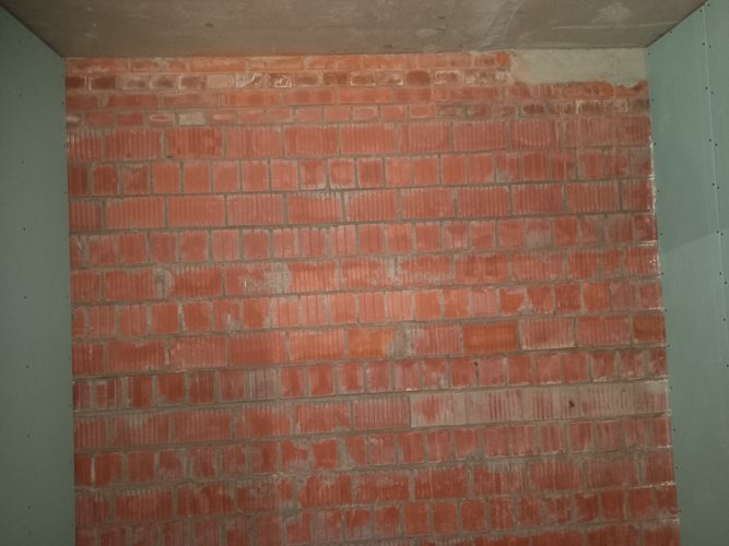 Это не 2 розетки на всё помещение, а их изобилие. Причём на кирпичной стене розетки монтированы с запасом под слой штукатурки.