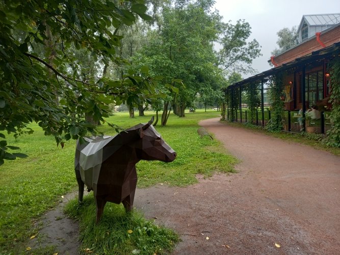 Расположен в саду Бенуа. Интерьер ресторана поддерживает фермерскую стилистику. Детали декора и аутентичные старинные вещицы создают ощущение загородной, спокойной жизни. А вид на Сад Бенуа, в котором находится ресторан, вызывает чувство умиротворенности и удаленности от городской суеты. Соседнее историческое здание с ним - стильный коворкинг.