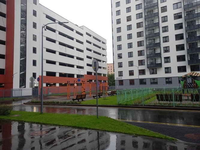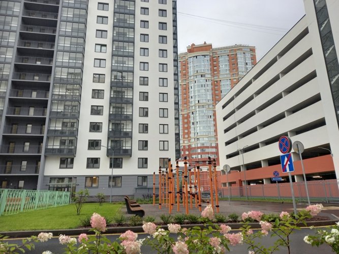 Через дорогу от ЖК “Руднева 15” все магазины, огромный фитнес клуб Fitness 24 и ТЦ Парк Молл. Но при этом на территории самого ЖК “Руднева 15” - тишина и не могут заходить посторонние. Соседствующие здания квартала - только паркинг и детский сад, а потому здесь идеал для тихой жизни с детьми.