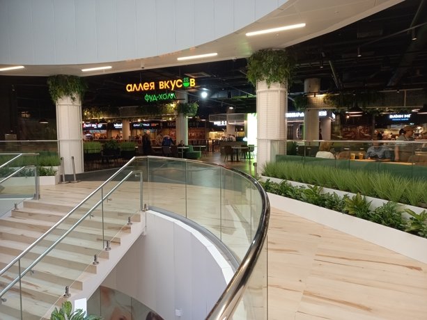 Расположен в центральной части на втором этаже ТЦ "Парк Молл". Является его изюминкой.