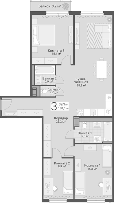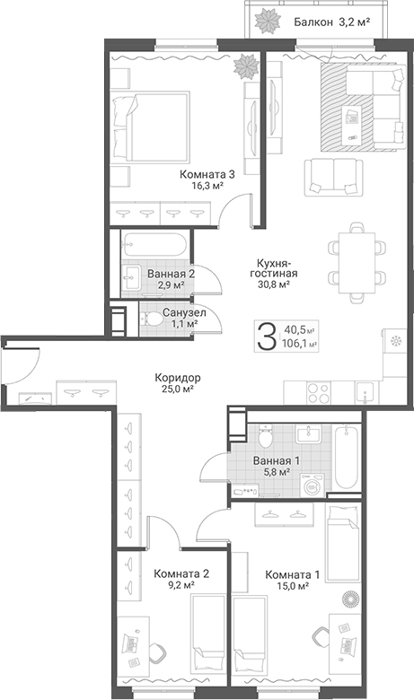 3-комнатные