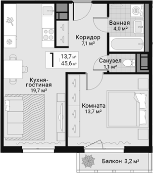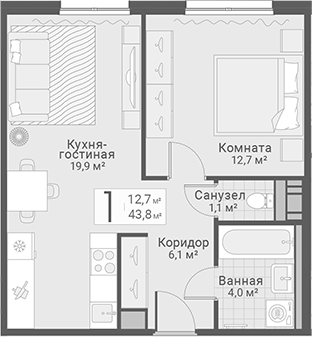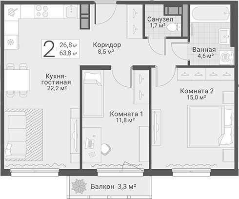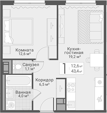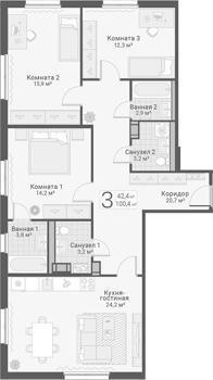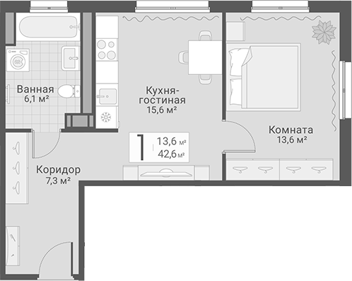 Площадь от 42.6 м2