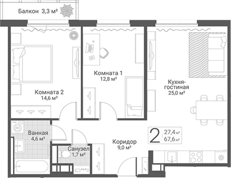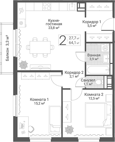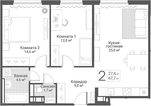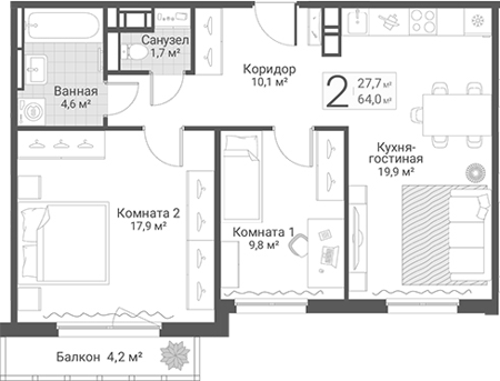 Площадь от 61.7 м2