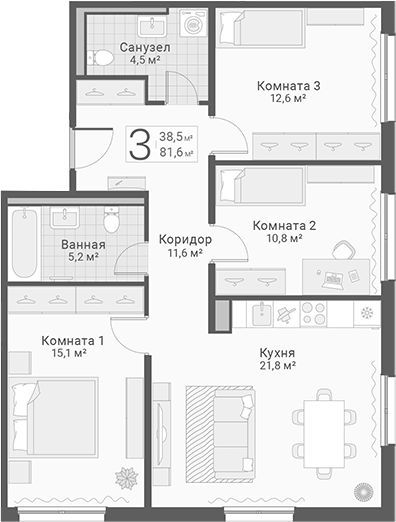 Площадь от 81.6 м2