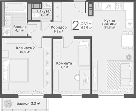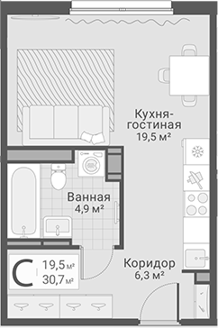 Площадь от 30.8 м2