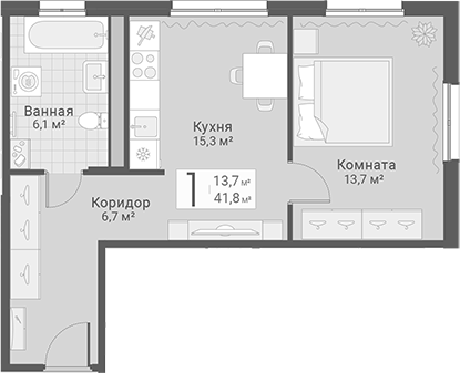 Площадь от 41.8 м2